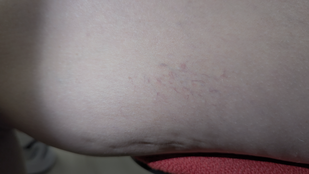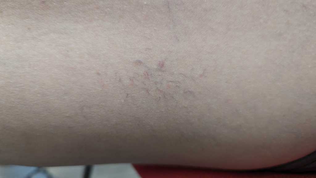 Fotografía pre tratamiento de la araña vascular en la pierna